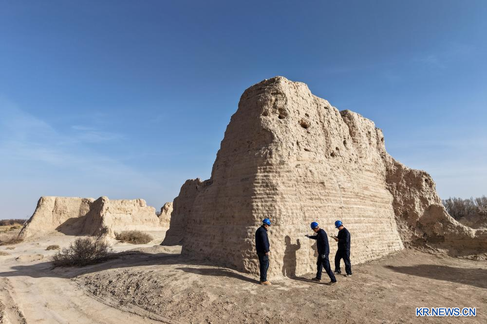 [신화망 과저우 11월20일] 최근 전국중점문물보호단위인 포청쯔(破城子) 유적 보수 공정(2기)이 정식으로 마무리돼 자료 정리 및 검수 준비 단계에 들어갔다. 간쑤(甘肅)성 과저우(瓜州)현에 위치한 포청쯔는 한나라·당나라 시기 실크로드의 중요 고성 유적이다.