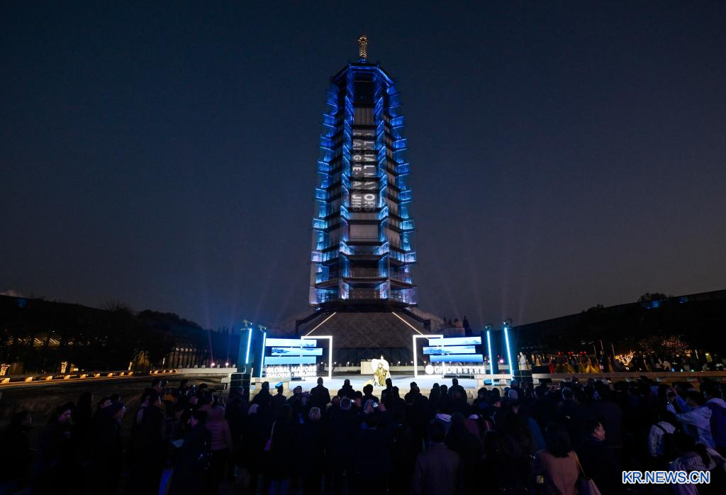 19일 '세계 시장(市長) 대화·난징(南京)' 행사 개막식에서 배우들이 공연을 펼치고 있다.