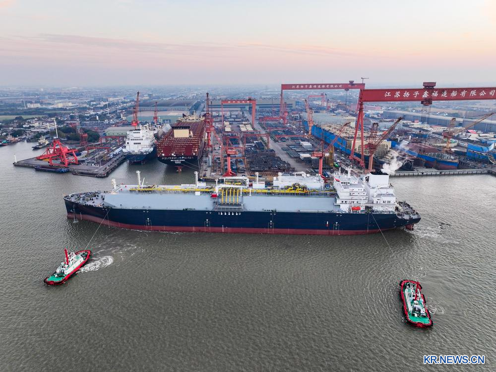 [신화망 타이저우 11월23일] 20일 장쑤(江蘇) 양쯔(揚子)신푸(鑫福)조선회사가 건조한 17만5천m³ 규모 LNG 운반선 '신푸 124'호가 장쑤성 타이저우(泰州) 타이싱(泰興)시에서 출항해 시험 항해에 나섰다.
