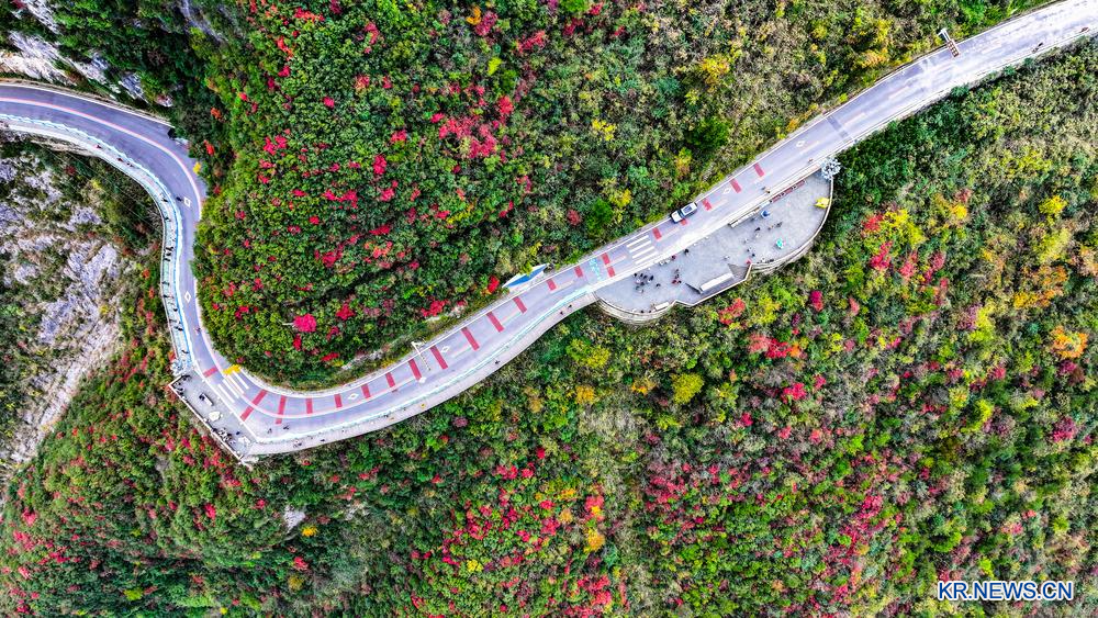 [신화망 충칭 11월23일] 22일 충칭(重慶)시 우산(巫山)현에 위치한 선뉘(神女)관광구의 풍경을 드론으로 내려다봤다.
