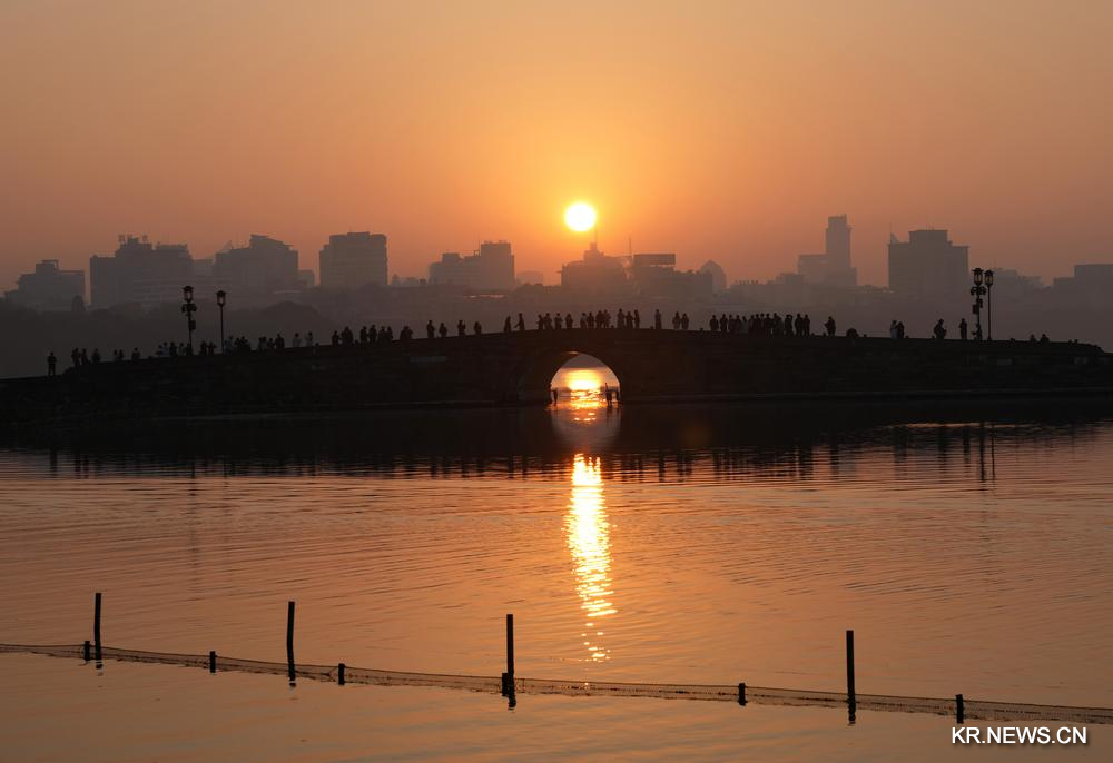 23일 시후 돤차오(斷橋)의 일출 풍경. 2025.11.23