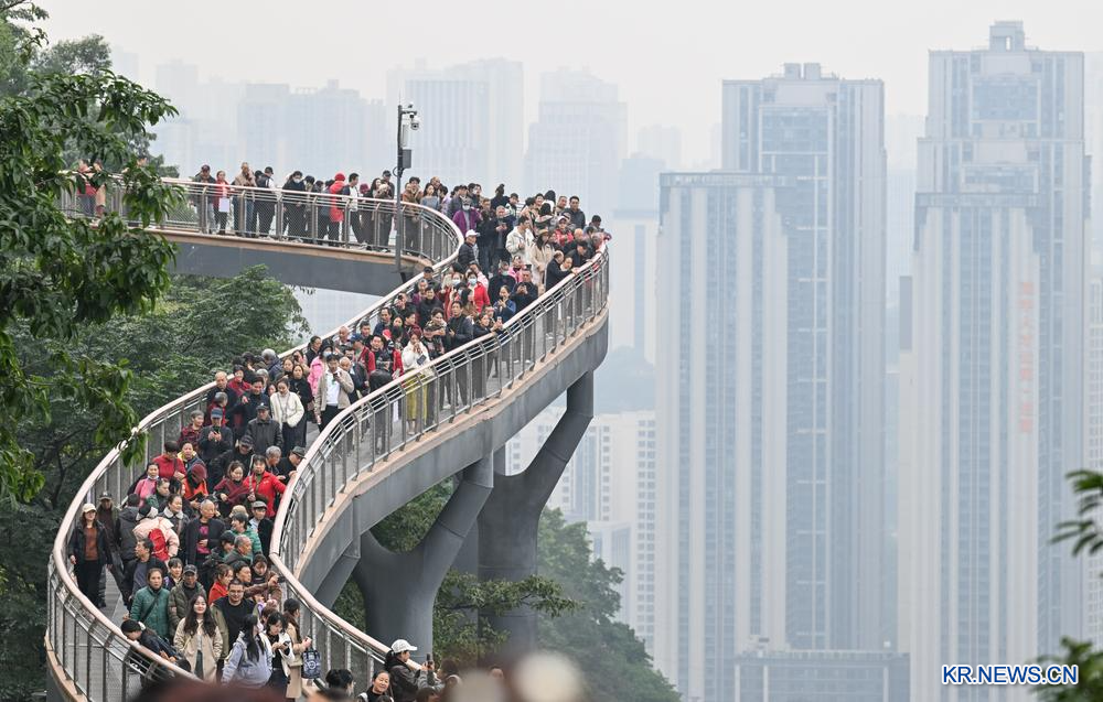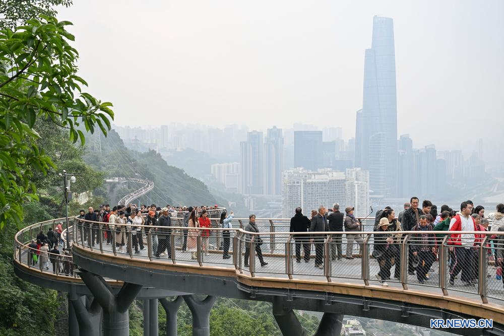 [신화망 충칭 11월26일] 24일 충칭(重慶)시 어링(鵝嶺)잔교를 건너는 관광객.