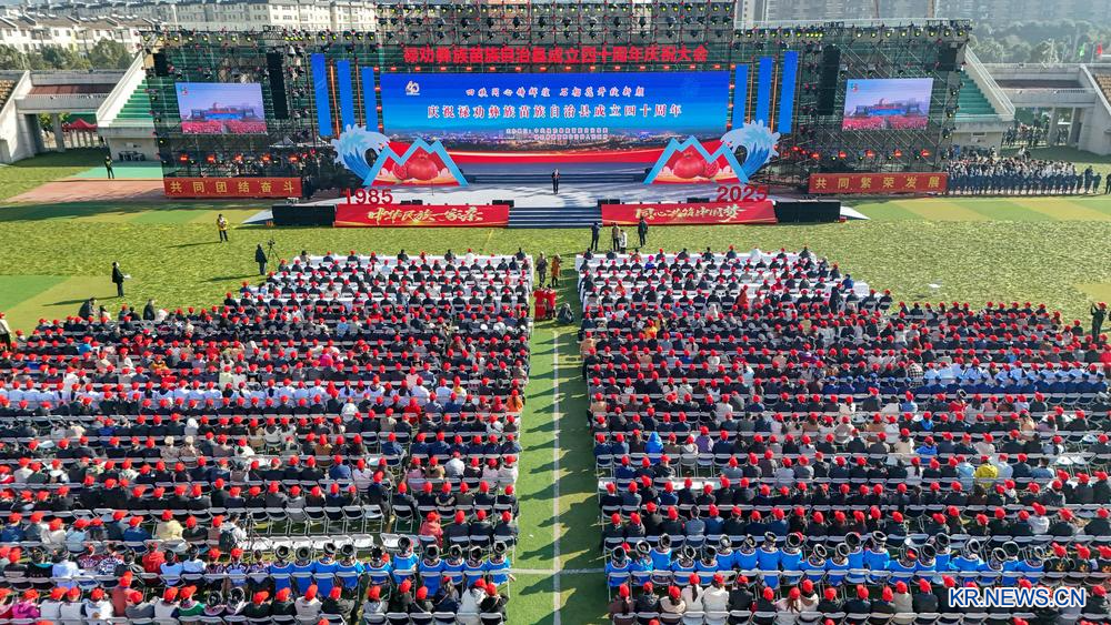 이날 루취안 이족먀오족자치현 성립 40주년 경축대회 현장. 2025.11.25