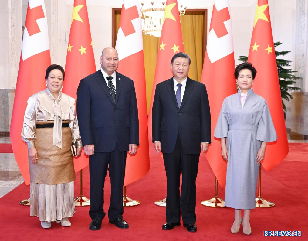 시진핑(習近平) 중국 국가주석이 25일 오전 베이징 인민대회당에서 중국을 국빈 방문한 투포우 6세 통가 국왕과 회견했다. 회담에 앞서 시 주석은 인민대회당 북대청에서 투포우 6세 국왕을 위해 환영식을 마련했다.[촬영/신화사 기자 인보구(殷博古)]
