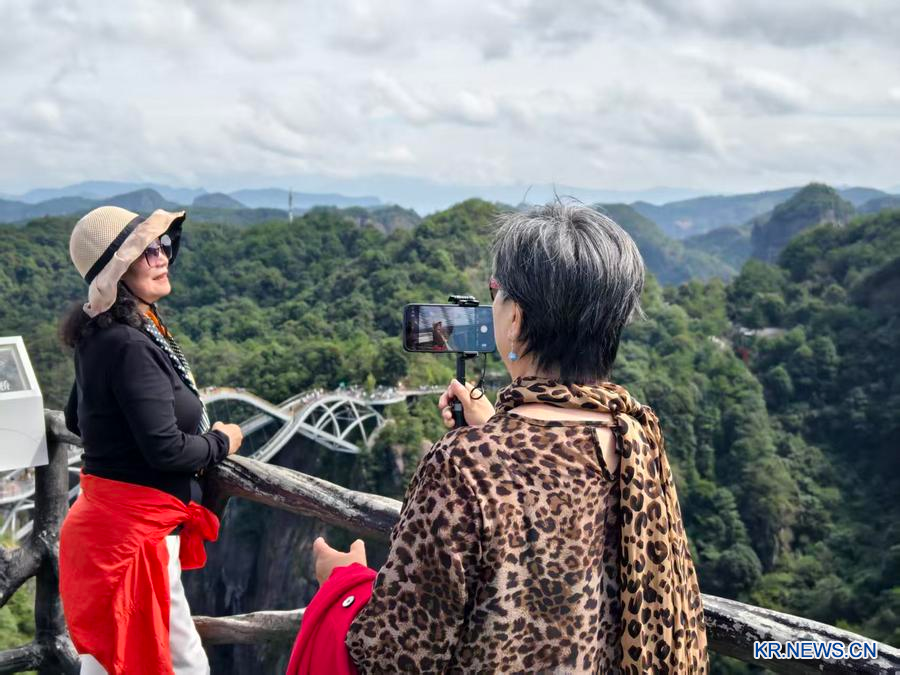 "제 나이에 무리 없이 등산할 수 있고, 하산도 더욱 수월해졌습니다." 77세의 고령 관광객 황만췬(黃漫群)은 '난톈(南天) 케이블카'와 '야외 에스컬레이터' 덕분에 해발 869m의 정상 전망대에 쉽게 도착했다고 말했다.