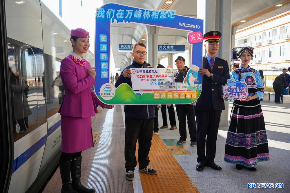 이날 판저우~싱이 고속철도의 첫 열차 G5356편이 싱이 남역에서 출발하고 있다. 2025.11.28