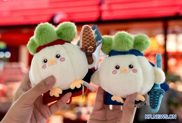손에 칼을 쥐고 머리에 빨간 띠를 두른 '쏸냐오'는 후베이의 문물 지식재산권(IP) 상품으로 출시 후 반년 만에 이미 10만 개의 판매고를 올렸다.