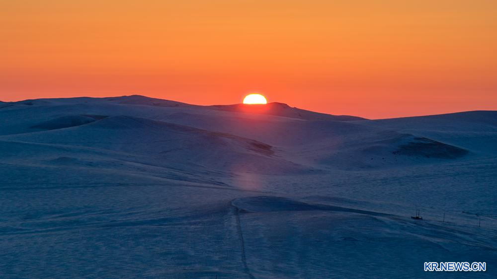 [신화망 후룬베이얼 12월4일] 네이멍구(內蒙古)자치구 후룬베이얼(呼倫貝爾)의 초원이 은빛 세상으로 변했다. 후룬베이얼 천바얼후(陳巴爾虎)기 일대에서는 모얼그러허(莫爾格勒河)가 설원 사이로 굽이굽이 흐르고 곳곳에 자리한 게르가 고요하고 광활한 북국의 겨울 풍경을 연출하고 있다.