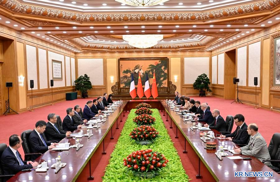 중·프 양국은 책임감 있는 자세로 다자주의의 기치를 높이 들고 역사의 올바른 편에 굳건히 서야 한다. 중국 측은 프랑스 측과 함께 늘 양국 인민의 근본 이익과 국제사회의 장기적 이익을 출발점으로 삼고 평등한 대화와 개방 협력을 견지함으로써 새로운 갑자(甲子·60년)를 맞이한 중·프 전면적 전략 동반자 관계를 더욱 안정적으로 잘 발전시켜 나가며 그 전략적 가치를 충분히 드러내고 평등하고 질서 있는 세계 다극화와 보혜∙포용의 경제 글로벌화를 추진하는 데 새로운 공헌을 하고자 한다.
