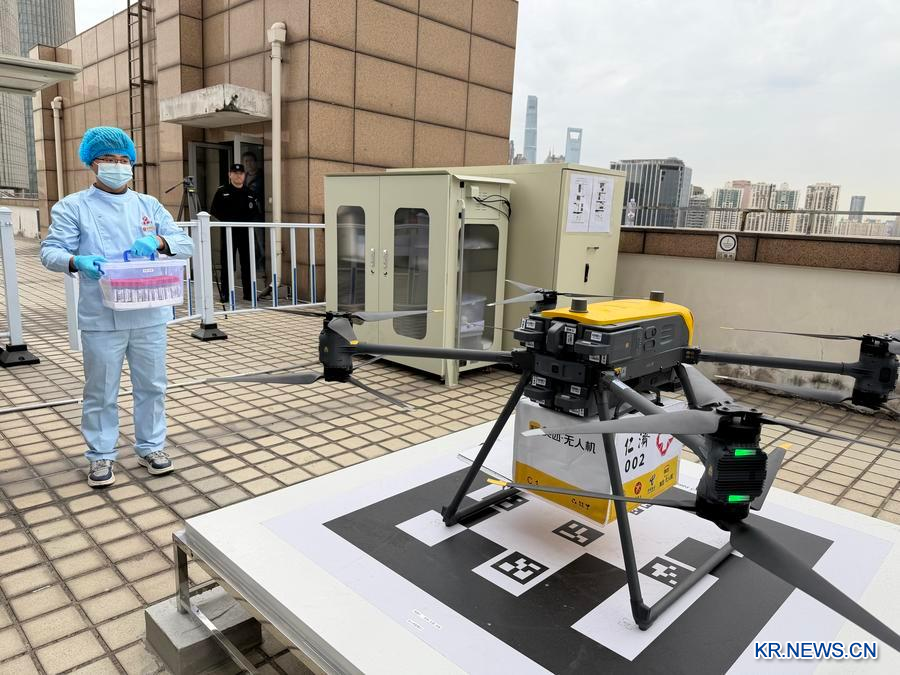 10일 의료 검사 샘플을 실은 드론이 상하이교통대학 의학원 부속 런지(仁濟)병원 동쪽 병동에서 이륙해 14.5㎞ 떨어진 남쪽 병동으로 향했다. 같은 시각 또 다른 드론은 런지병원 북쪽 병동에서 출발해 8분 만에 4㎞ 떨어진 동쪽 병동 9호동 옥상에 착륙했다. 이로써 상하이시에서 처음으로 의료 샘플의 드론 상시 배송 노선이 공식 개통됐다.