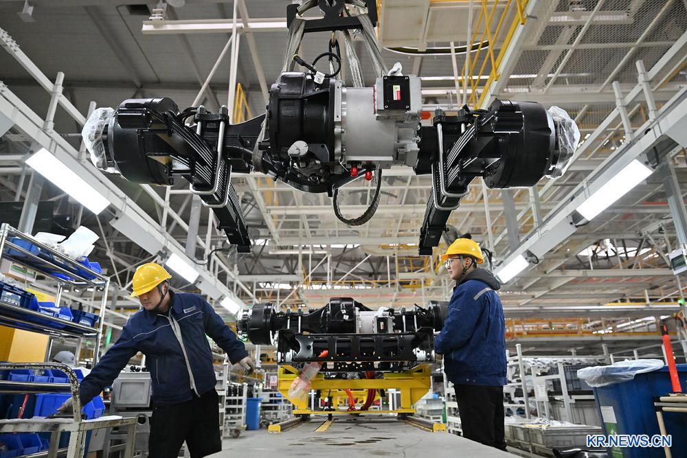 12일 허난(河南)성 상추(商丘)시 위상(豫商)경제기술개발구 내 한 신에너지차 기업 생산라인에서 작업이 한창이다.