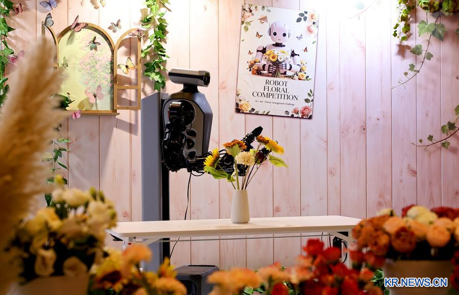 'GDPS 2025'에서 꽃꽂이 기술을 선보이고 있는 로봇. (사진/신화통신)
