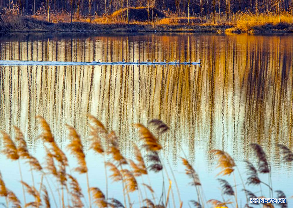 지난 8일 허베이(河北)성 쭌화(遵化)시 뿌쯔뎬(堡子店)진 수역의 겨울 풍경을 드론 사진에 담았다. 2025.12.8