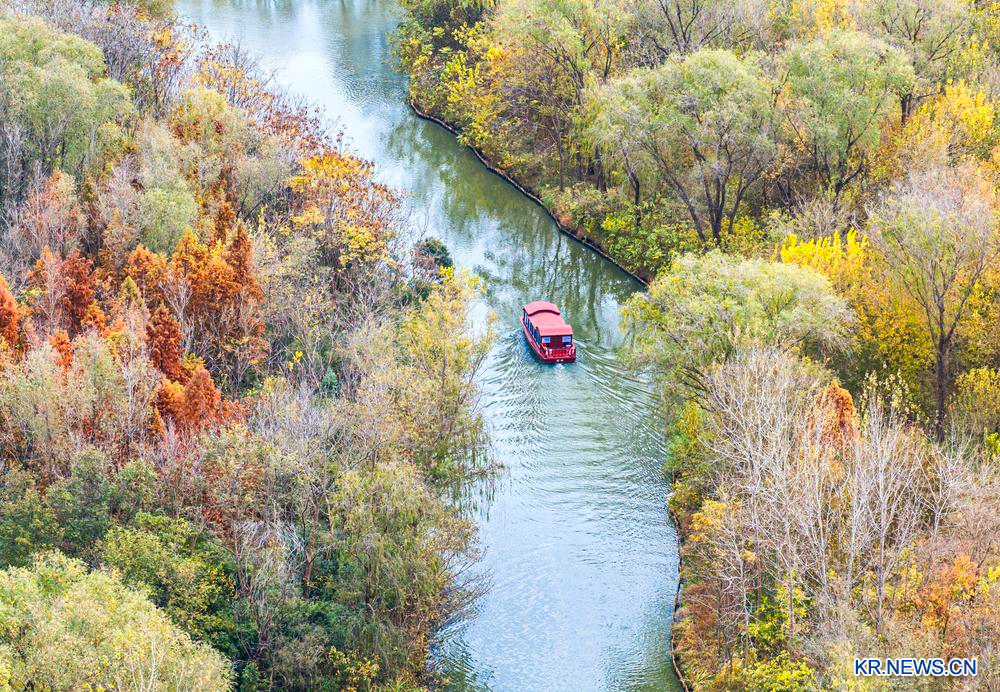지난달 30일 장쑤(江蘇)성 양저우(揚州) 서우시후(瘦西湖) 풍경구의 초겨울 풍경을 드론으로 촬영했다. 2025.11.30