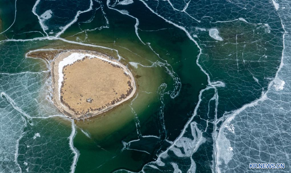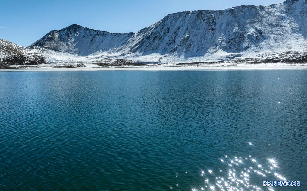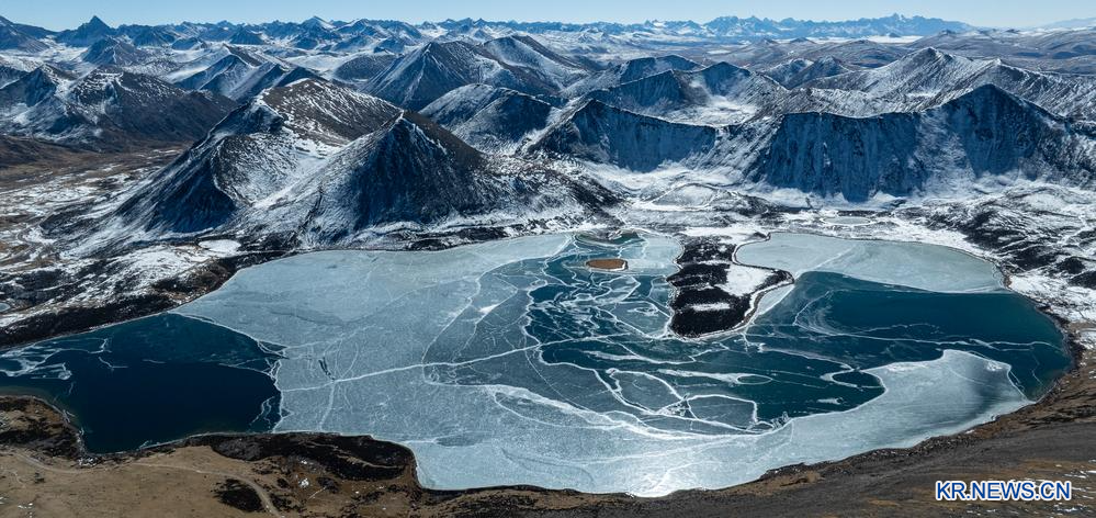 [신화망 라싸 12월16일] 쓰진라춰(思金拉錯)는 시짱(西藏)자치구 라싸(拉薩)시에 위치한 호수로, 표면 해발고도는 약 4천500m에 달한다. 겨울 날씨에 얼어붙은 호수는 눈 덮인 산봉우리와 어우러지며 겨울 절경을 연출하고 있다.