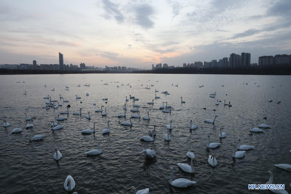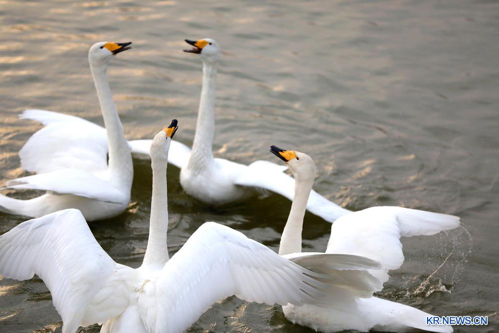 [신화망 싼먼샤 12월22일] 겨울로 접어들면서 1만여 마리의 백조들이 허난(河南)성 황허(黃河)습지에 모여들었다. 최근 수년간 황허 습지의 생태환경 개선에 따라 백조 개체수는 매년 증가세를 보이고 있다.