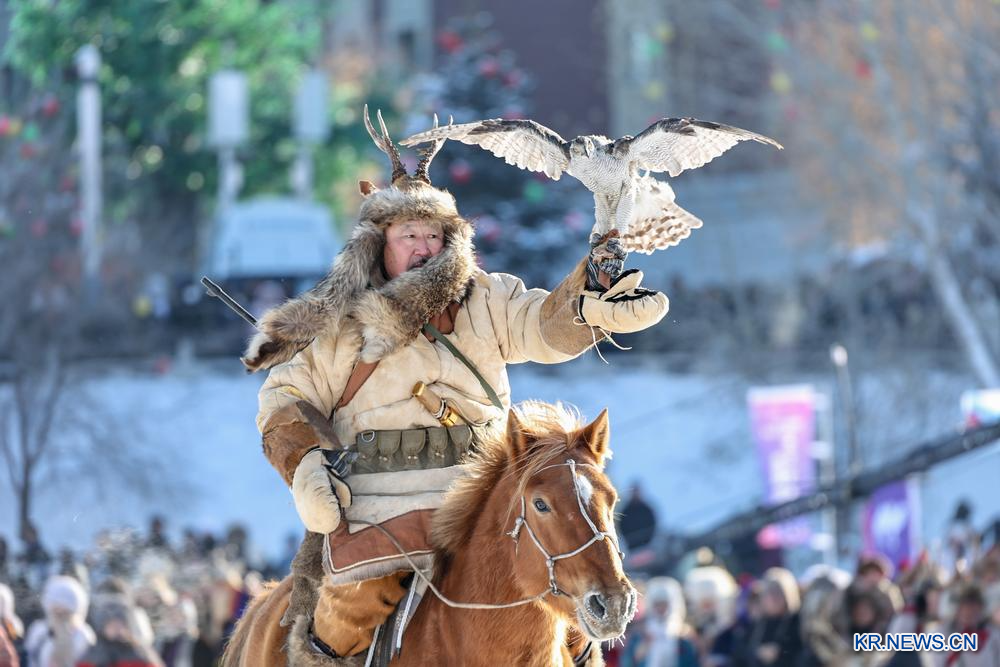 [신화망 하이라얼 12월22일] '제21회 네이멍구(內蒙古)자치구 빙설 나다무(那達慕)' 개막식이 21일 후룬베이얼(呼倫貝爾)시에서 열려 많은 국내외 관광객과 시민들의 발길을 끌었다.