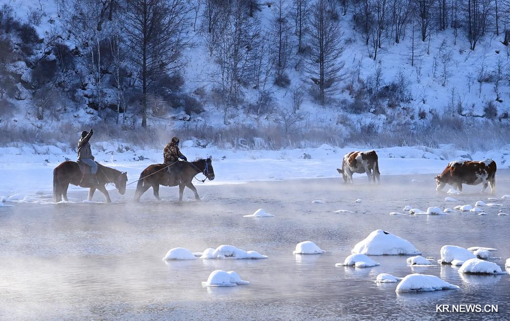 [신화망 아얼산 1월2일] 신정(원단∙元旦) 기간 안개가 자욱한 하라하허(哈拉哈河)에 많은 관광객의 발길이 이어졌다. 네이멍구(內蒙古)자치구 아얼산(阿爾山)시에 위치한 하라하허의 일부 구간은 지하 온천수가 유입돼 한겨울에도 얼지 않는 것으로 알려져 있다.