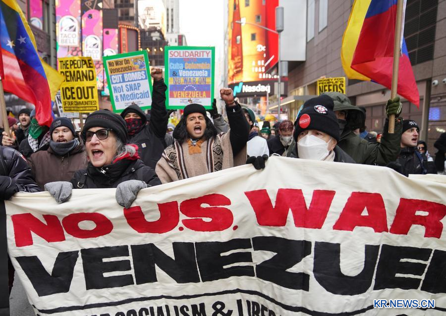 한편 3일 미국 곳곳에서는 베네수엘라 공격에 항의하고 무력을 통한 타국 정권 전복에 반대하는 시위가 열렸다.
