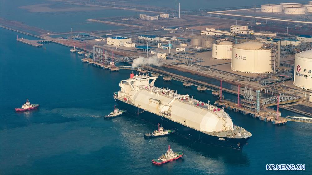 [신화망 톈진 1월6일] 6만4천400t(톤)의 LNG(액화천연가스)를 실은 해외 운반선이 5일 중국 국가석유천연가스관망공사(PipeChina) 톈진(天津) LNG 부두에 접안하면서 해당 부두가 2026년 첫 LNG 하역 작업을 개시했다.