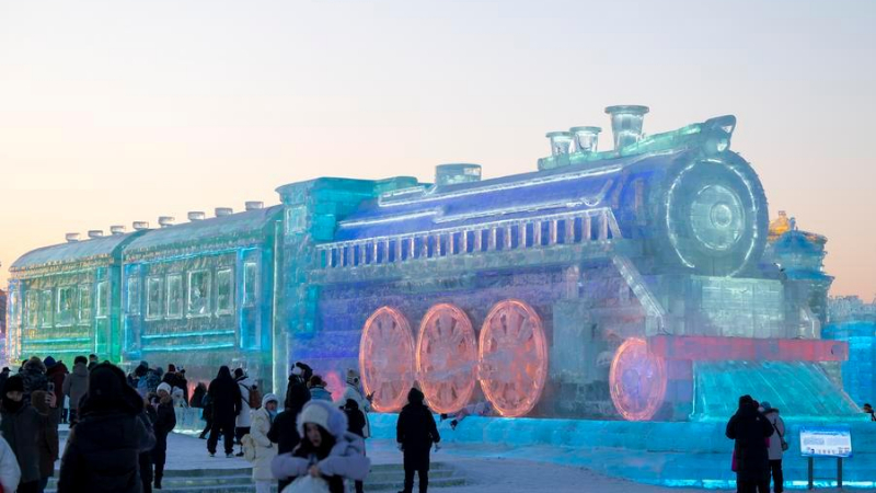 황허 후커우 폭포 관광지가 겹겹이 쌓인 얼음과 무지개가 어우러져 그림 같은 경관을 자아냈다. 2026.1.6