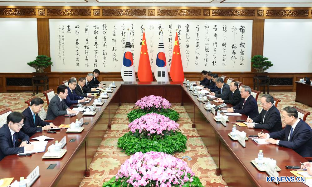 [신화망 베이징 1월7일] 6일 오전 리창(李强) 총리는 베이징 댜오위타이(釣魚臺) 국빈관에서 중국을 국빈 방문 중인 이재명 한국 대통령과 회견했다. 2026.1.6