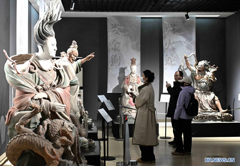 [신화망 스자좡 1월8일] '고대 채색 조각상∙벽화 예술전'이 허베이(河北)성 스자좡(石家莊)시 박물관에서 열린다. 1월 1일부터 3월 8일까지 이어지는 이번 전시는 당, 송, 원, 명, 청 등 다섯 왕조에 걸친 채색 조각상, 벽화, 관련 기술 전시품을 선보인다.