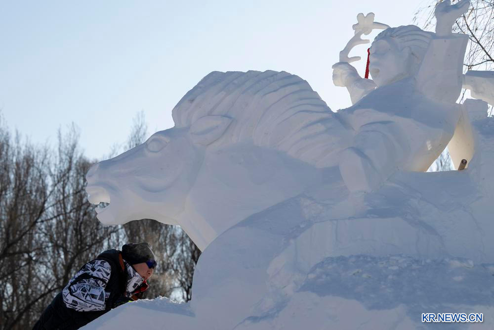 7일 헤이룽장(黑龍江)성 하얼빈(哈爾濱) 타이양다오(太陽島) 국제눈조각예술박람회 단지에서는 13개 국가에서 온 100여 명의 예술가들이 추운 날씨에도 예술에 대한 열정을 불태웠다.