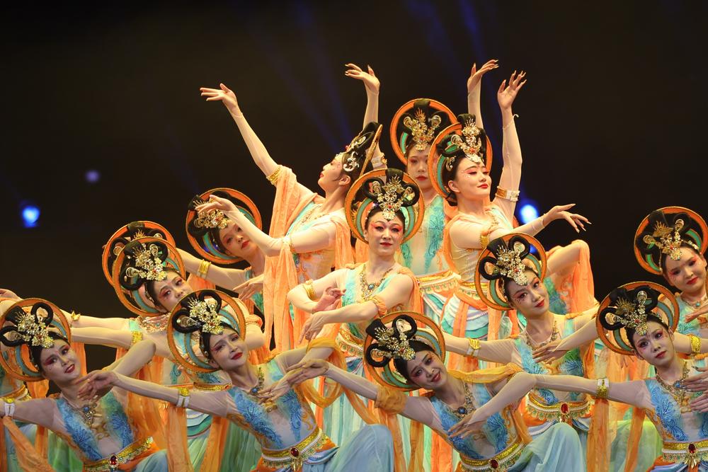 이날 둔황(敦煌)춤 공연을 펼치는 주취안(酒泉)시 문화관 공연자들. 2026.1.8