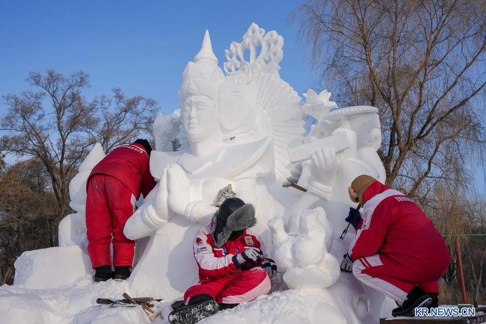 中 하얼빈, 혹한 속에서 더욱 빛나는 눈 조각 작품-Xinhua