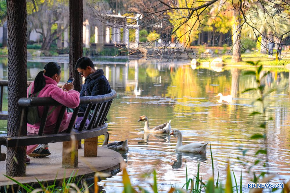[신화망 쿤밍 1월11일] 10일 윈난(雲南)성 쿤밍(昆明)시는 맑고 화창한 날씨를 보였다. 시민과 관광객들은 겨울 햇살 속에서 쿤밍 식물원을 거닐며 자연의 아름다움을 감상하고 여유롭고 편안한 주말 시간을 만끽했다.