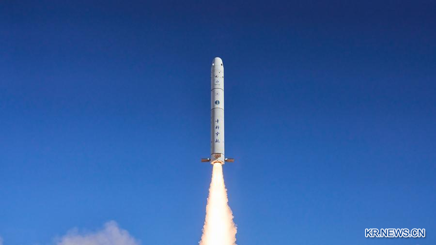 하늘 높이 솟아오르는 '리훙(力鴻) 1호 야오(遙)-1' 우주선. (중커(中科)우주항공기술회사 제공)