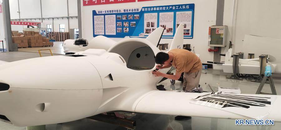 윈난성 미러(彌勒)하오샹(浩翔)테크회사의 생산 작업장에서 작업자가 항공기를 조립하고 있다. (사진/신화통신)