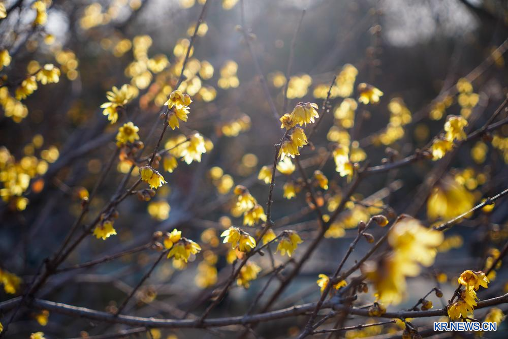 [신화망 지난 1월14일] 추운 겨울 산둥(山東)성 지난(濟南)시 첸포산(千佛山)공원 납매단지에서 1천여 그루의 납매나무가 꽃을 활짝 피워내자 관광객과 시민의 발걸음이 줄을 잇고 있다.