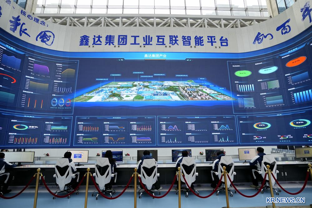 14일 첸안시 신다(鑫達)철강그룹 직원들이 산업용 스마트 연결 플랫폼의 데이터를 모니터링하고 있다. 2026.1.14pagebreak