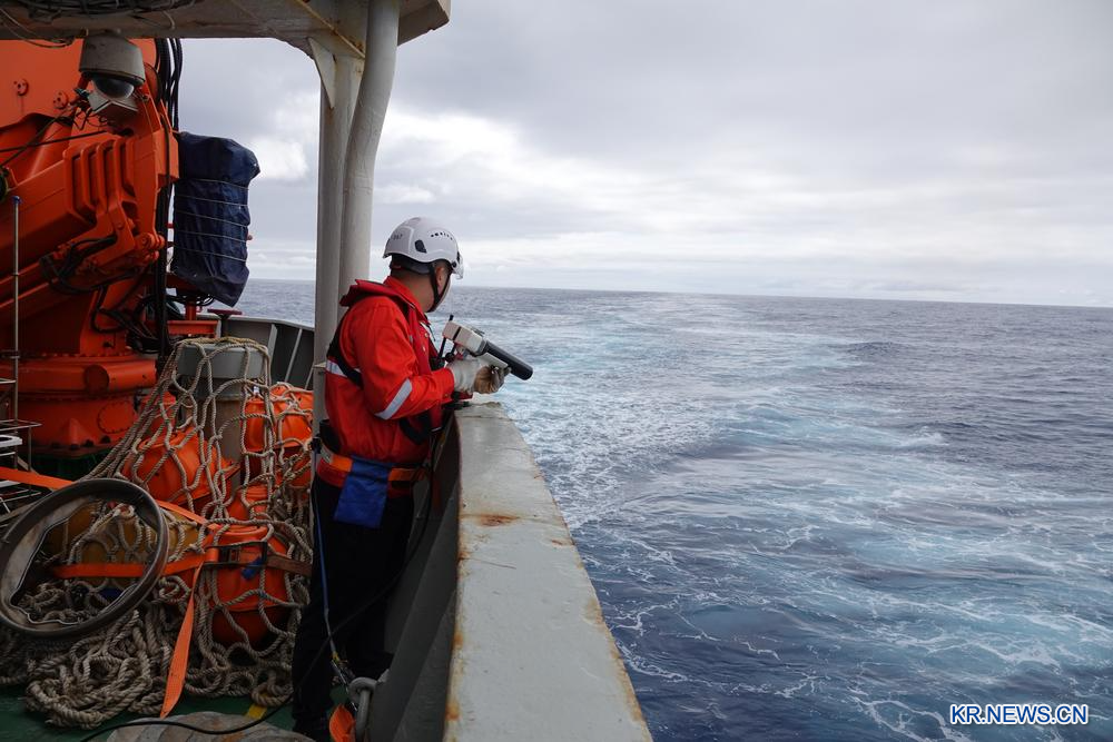 [신화망 쉐룽호 1월18일] 16일 제42차 남극 과학조사 임무를 수행 중인 중국의 극지 과학탐사 쇄빙선 '쉐룽(雪龍)호'가 아문센해로 향하는 도중 악천후 속에서도 낙하식 수온·염분·수심 관측장치(XCTD)를 투하해 본격적인 대양 관측 작업의 시작을 알렸다.
