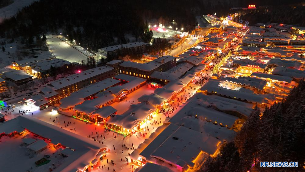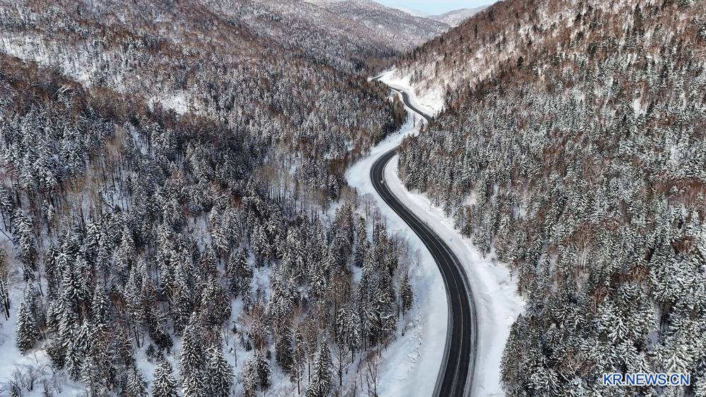 [신화망 하얼빈 1월18일] 16일 야쉐(亞雪)도로와 이어지는 '중국설향(雪鄕)' 관광지를 드론으로 담았다.