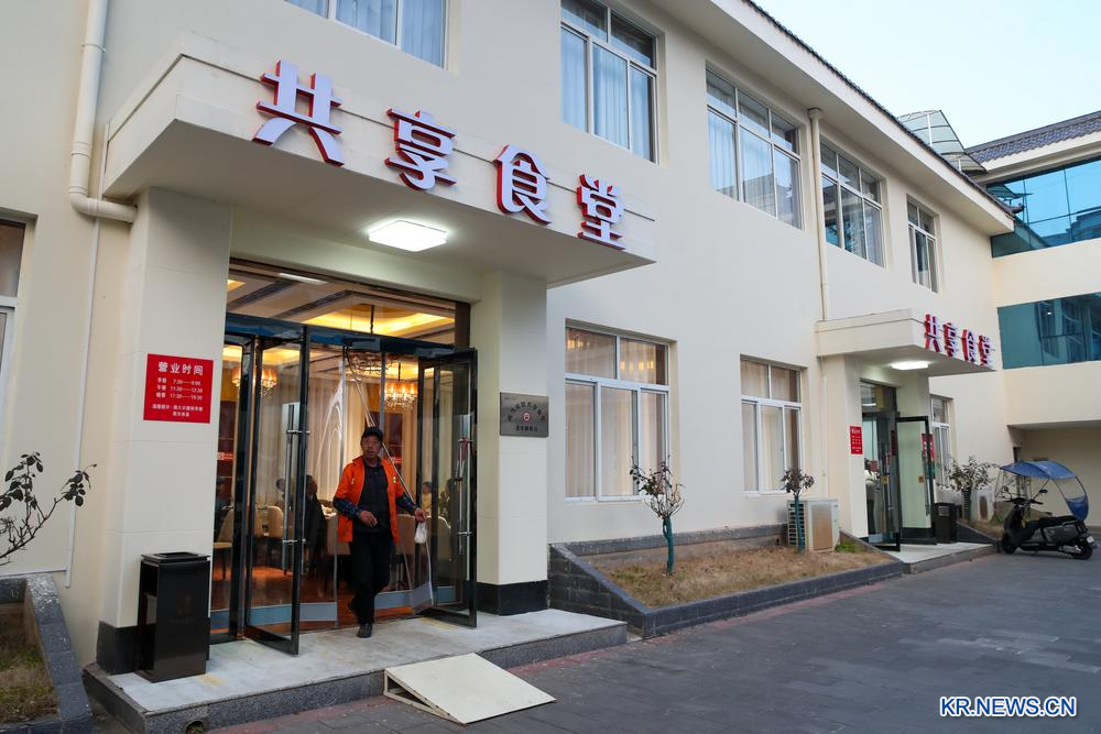 [신화망 룽난 1월19일] 17일 한 근로자가 간쑤(甘肅)성 량당(兩當)현에 위치한 량당호텔 공유 식당에서 식사를 마치고 나오고 있다.