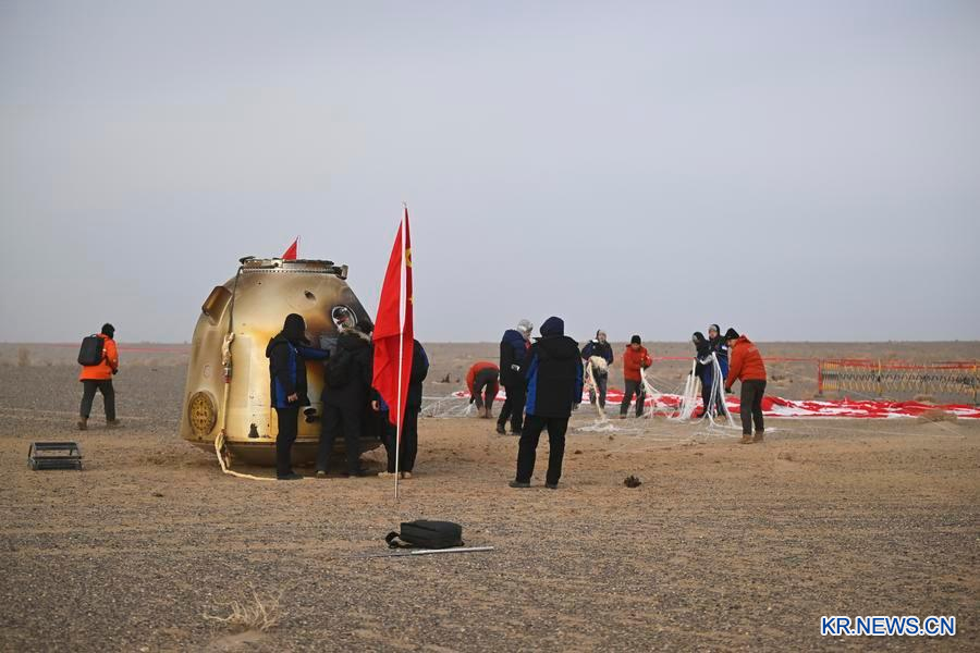 [신화망 중국 주취안 1월20일] 우주인이 탑승하지 않는 중국 선저우(神舟) 20호 우주선 귀환 캡슐이 베이징 시간 19일 오전 9시 34분 둥펑(東風)착륙장에 무사히 도착했다.