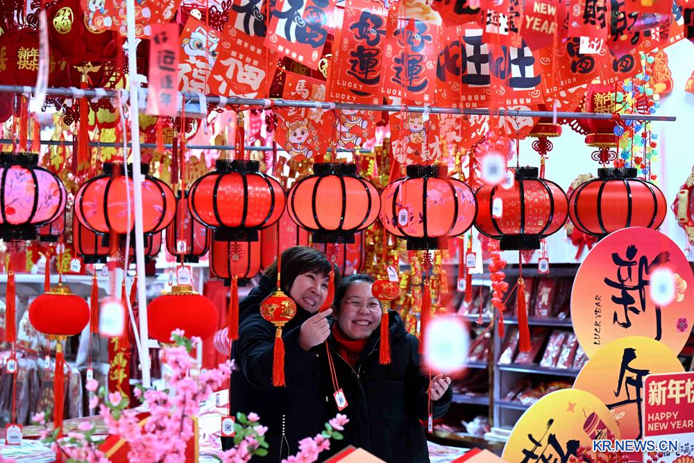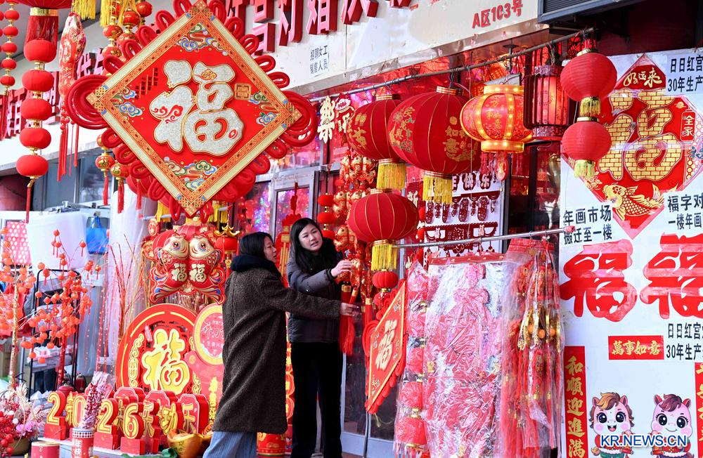 [신화망 스자좡 1월21일] 춘절(春節·음력설)을 앞두고 명절 분위기가 무르익으면서 각지 춘절맞이 용품 시장에 사람들의 발길이 이어지고 있다.