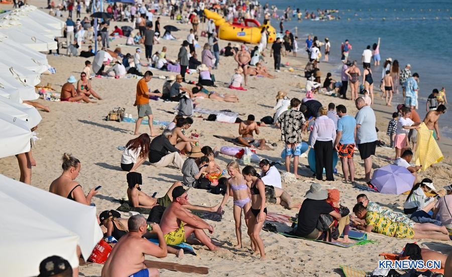 [신화망 중국 하이커우 1월22일] 하이난(海南)성 싼야(三亞)시의 다둥하이(大東海) 해변. 외국인 관광객들이 겨울 햇살을 만끽하고 있다.