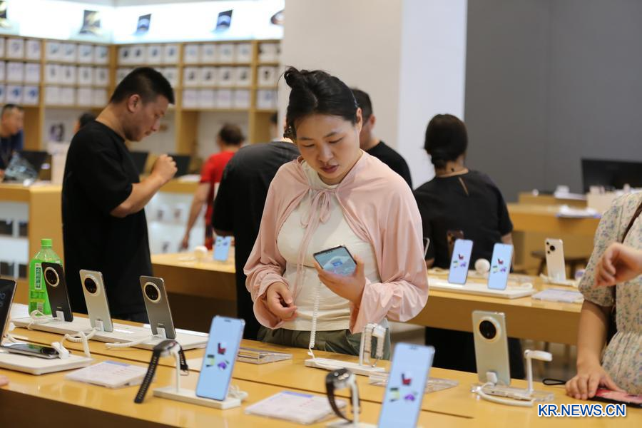 지난해 6월 15일 쓰촨(四川)성 러산(樂山)시의 한 휴대전화 매장에서 제품을 고르고 있는 소비자. (사진/신화통신)