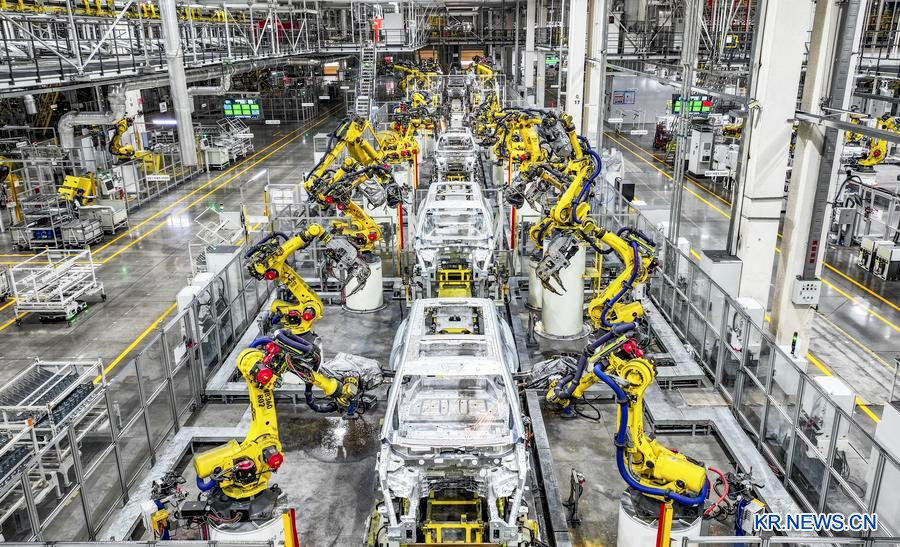 2025년 9월 19일 충칭(重慶)시 량장(兩江)신구에 위치한 싸이리스(賽力斯·SERES) 슈퍼팩토리의 자동화 생산 현장. (사진/신화통신)