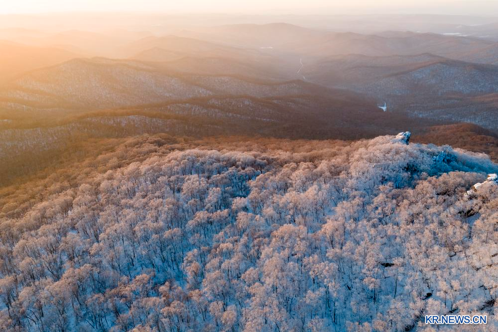 [신화망 솽야산 1월26일] 25일 아침, 헤이룽장(黑龍江)성 솽야산(雙鴨山)시에 위치한 치싱산(七星山) 국가삼림공원에 상고대가 형성됐다. 아침 햇살 아래 산을 뒤덮은 상고대가 장관을 이뤘다.