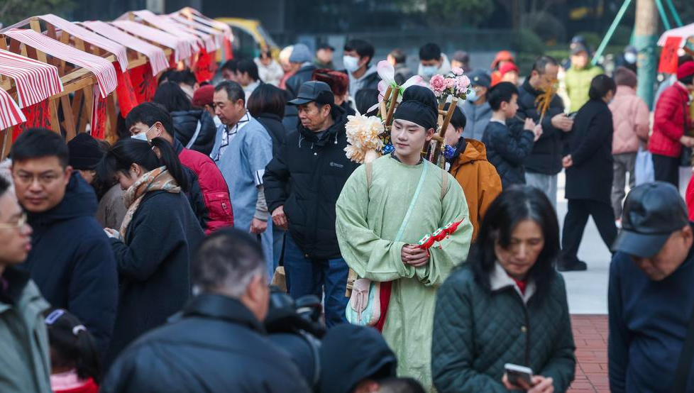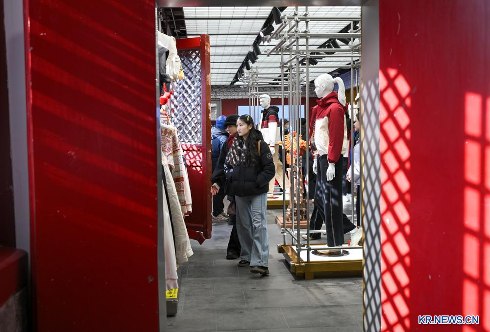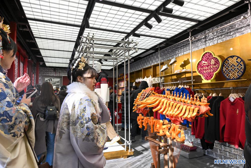 [신화망 베이징 1월26일] 관광객이 지난 24일 고궁 문화창의공간에서 상품을 고르고 있다.
