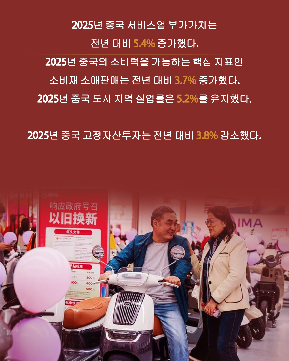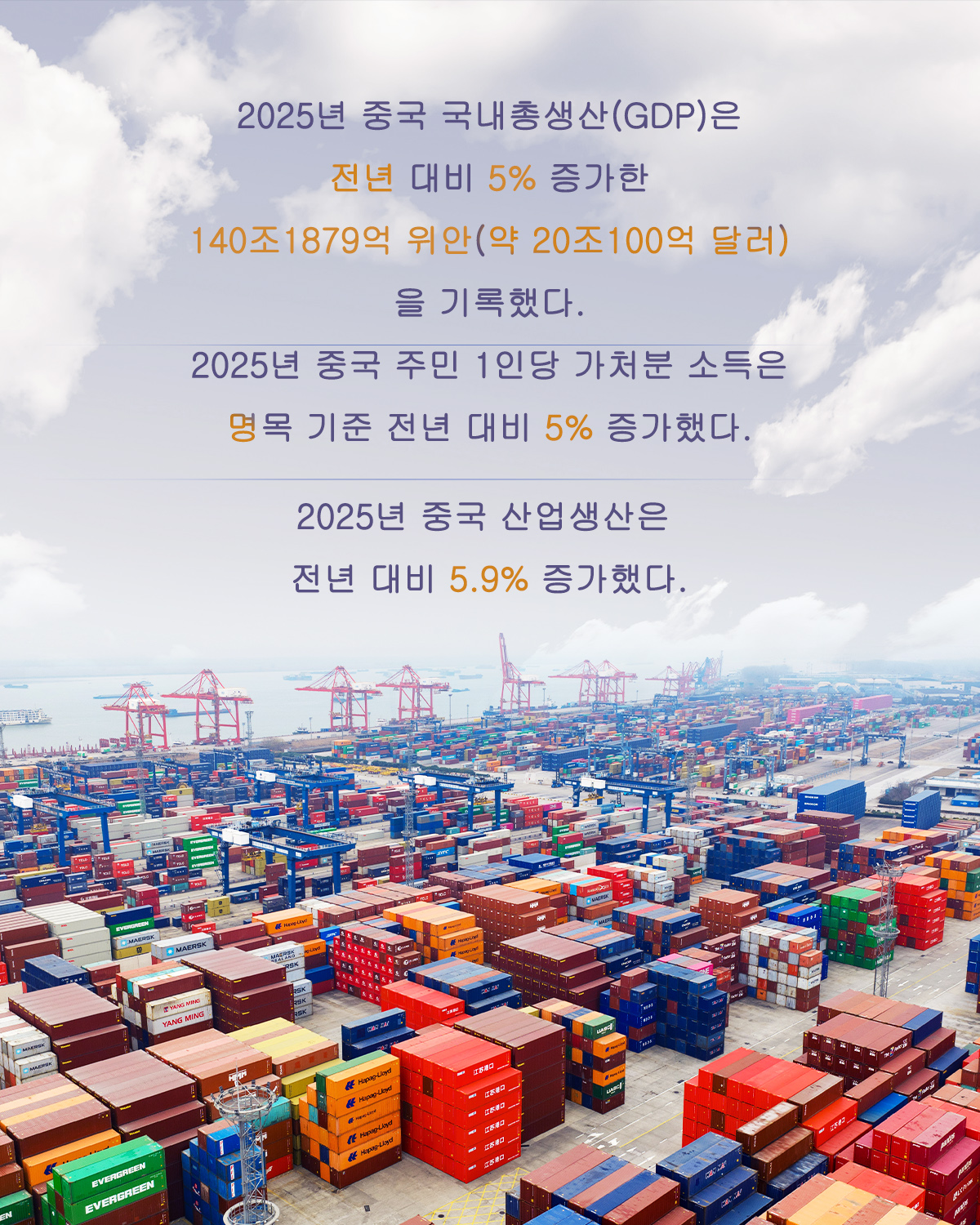 [신화망 베이징 1월28일] 2025년 중국의 국내총생산(GDP)은 전년 대비 5% 증가해 연간 성장 목표치인 ‘5% 안팎’을 달성했다. 인포그래픽을 통해 2025년 중국의 주요 경제 데이터를 살펴보자.