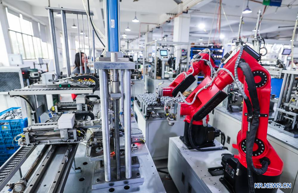 29일 진둥구에 위치한 한 기업의 자동화 생산라인에서 공기 주입 펌프를 생산하고 있다. 2026.1.29