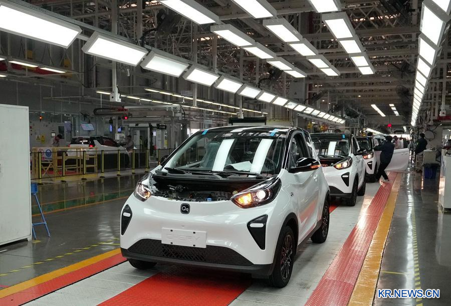 지난 8일 치루이(奇瑞·Chery) 스자좡(石家莊)지사의 신에너지차 생산라인에서 작업 중인 직원. (사진/신화통신)
