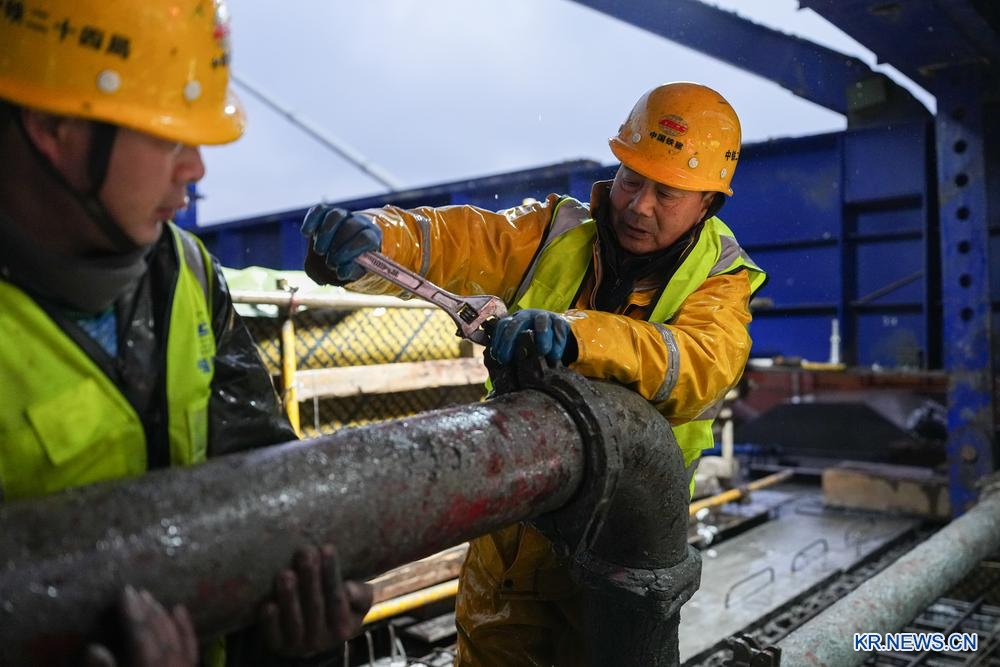 이날 드론으로 내려다본 둥탸오시 현수교 연결 공사 현장. 2026.1.31