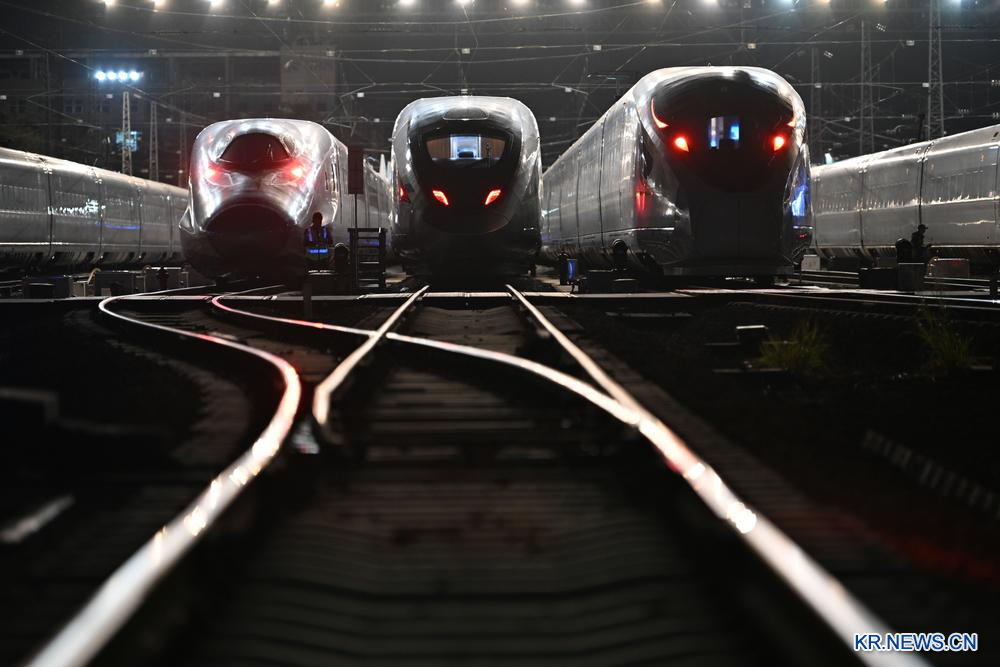 1일 광저우(廣州) 고속열차 차량기지에 정차해 있는 열차.